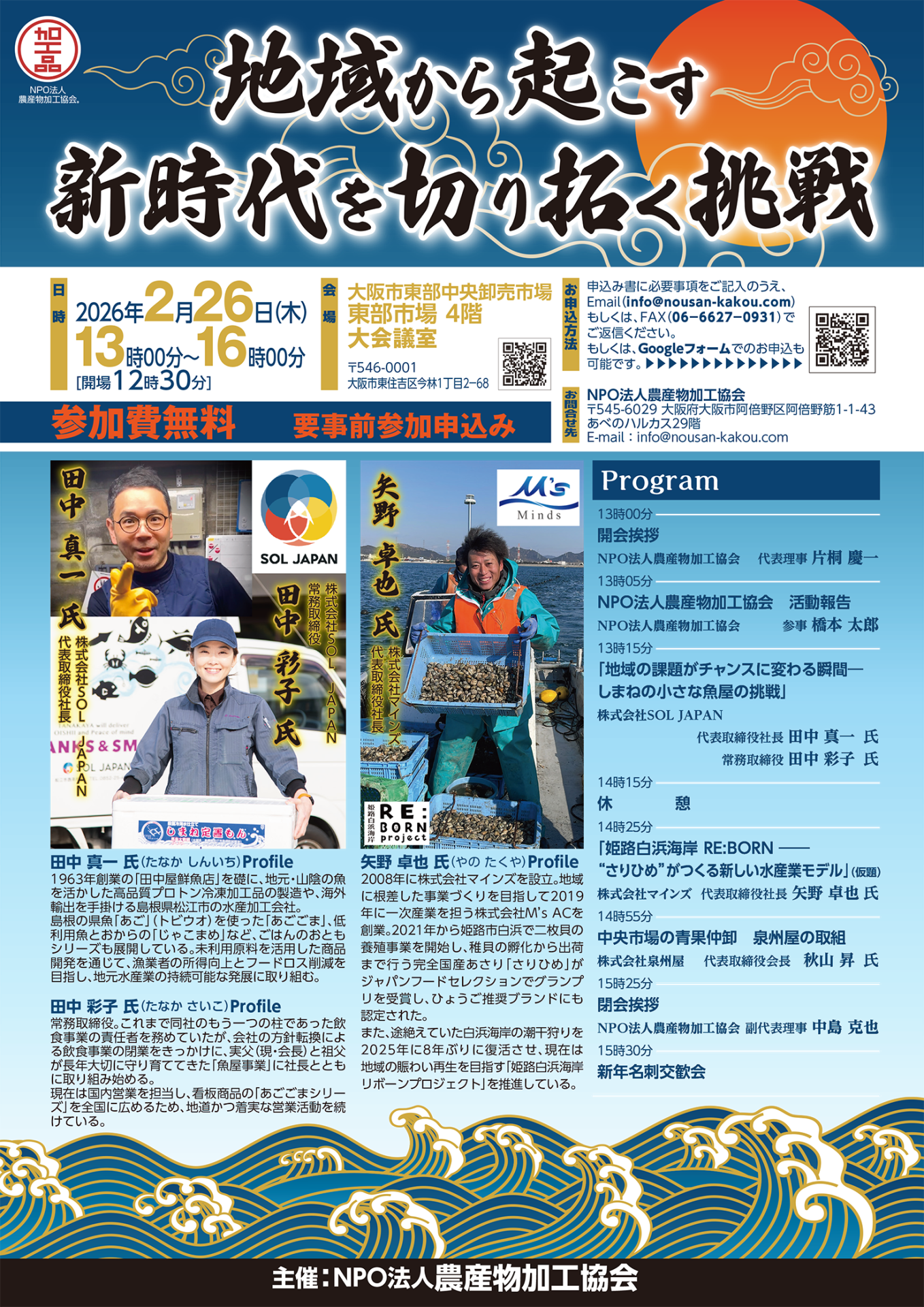 ご参加・ご関心をお寄せいただいた皆さま、そして本セミナーを主催されたNPO法人農産物加工協会の皆さまに、心より感謝申し上げます。